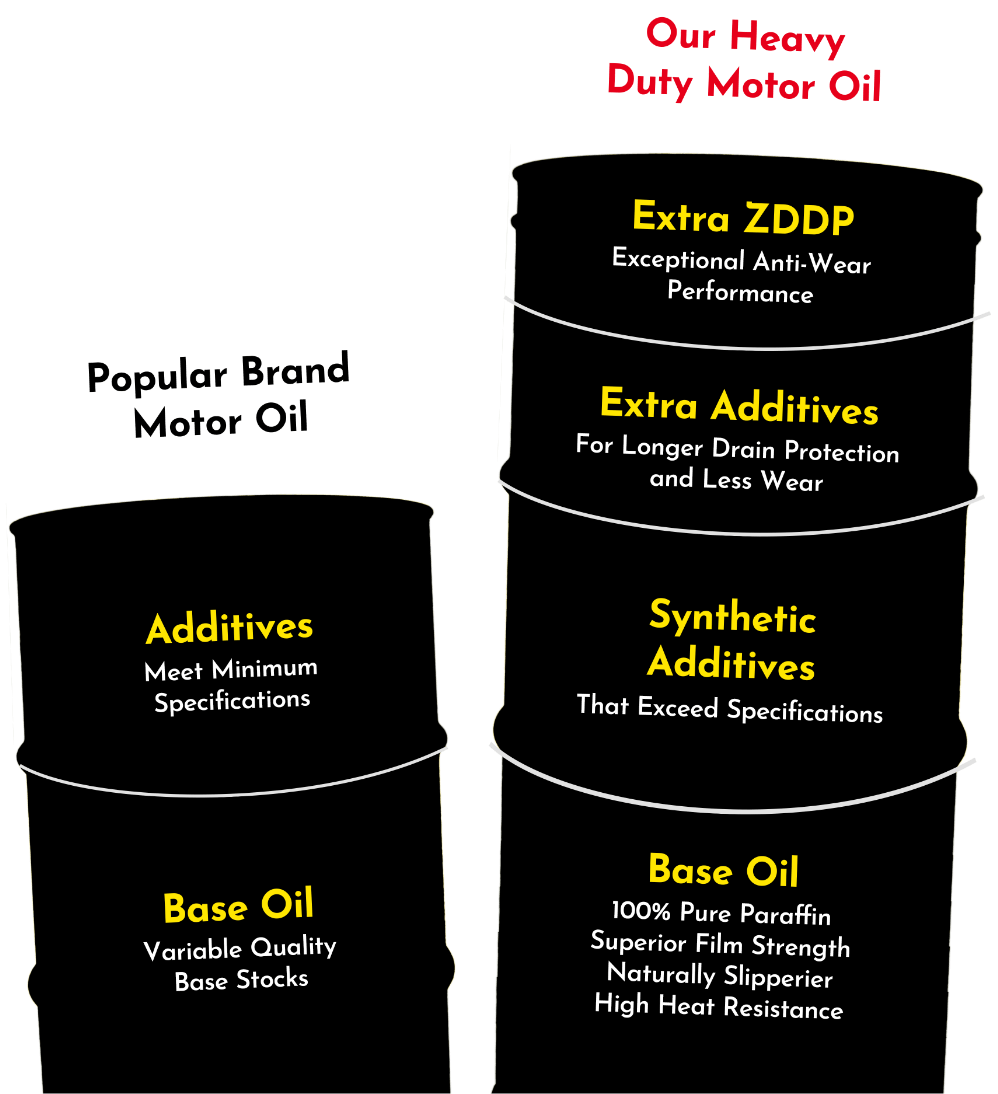 Cen-Pe-Co combines the highest-quality 100% pure paraffinic base oils with a unique detergent inhibitor package, extremely shear-stable polymers and over double the amount of zinc anti-wear additives.